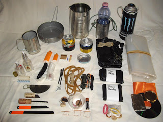 szúnyogháló, fűtőalkalmatosság, tűzifa, (fűrész, balta), főzéshez való eszközök (kés, kanál, edény, tűzhely, stb), rádió, petróleum,